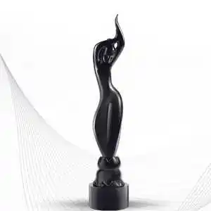 The statuette, known as The Black Lady, shows a woman with her arms up in a dance pose and her fingers intertwined (or "The Lady in Black"). Its original design was created by N.G. Pansare under the guidance of Walter Langhammer, the Times of India's art director.