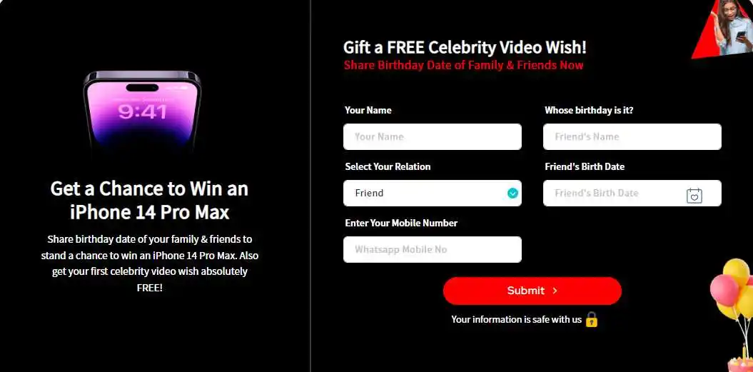 Personalised Celebrity wish from his favourite celebrity wishing him happy birthday through Tring.