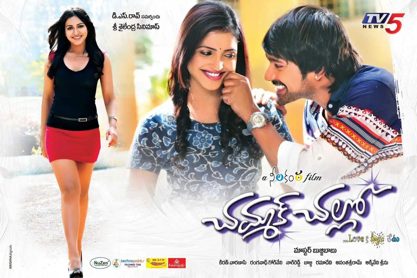 Varun Sandesh Sanchita Padukone and Catherine Tresa feature in G. Neelakanta Reddy's 2013 Telugu film Chammak Challo which was also produced by him. The movie's tagline is Love Ki Logic Ledu and Kiran Varanasi provided the music with shooting and editing duties shared by Ranganath Gogineni and Nagi Reddy.
