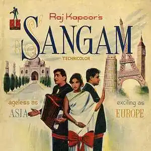 A 1964 Bollywood romantic drama titled Sangam was written by Inder Raj Anand directed produced and edited by Raj Kapoor at R. K. Studio and released by R. K. Films in collaboration with Mehboob Studio and Filmistan. Raj Kapoor Vyjayanthimala and Rajendra Kumar play the three main characters in the movie.