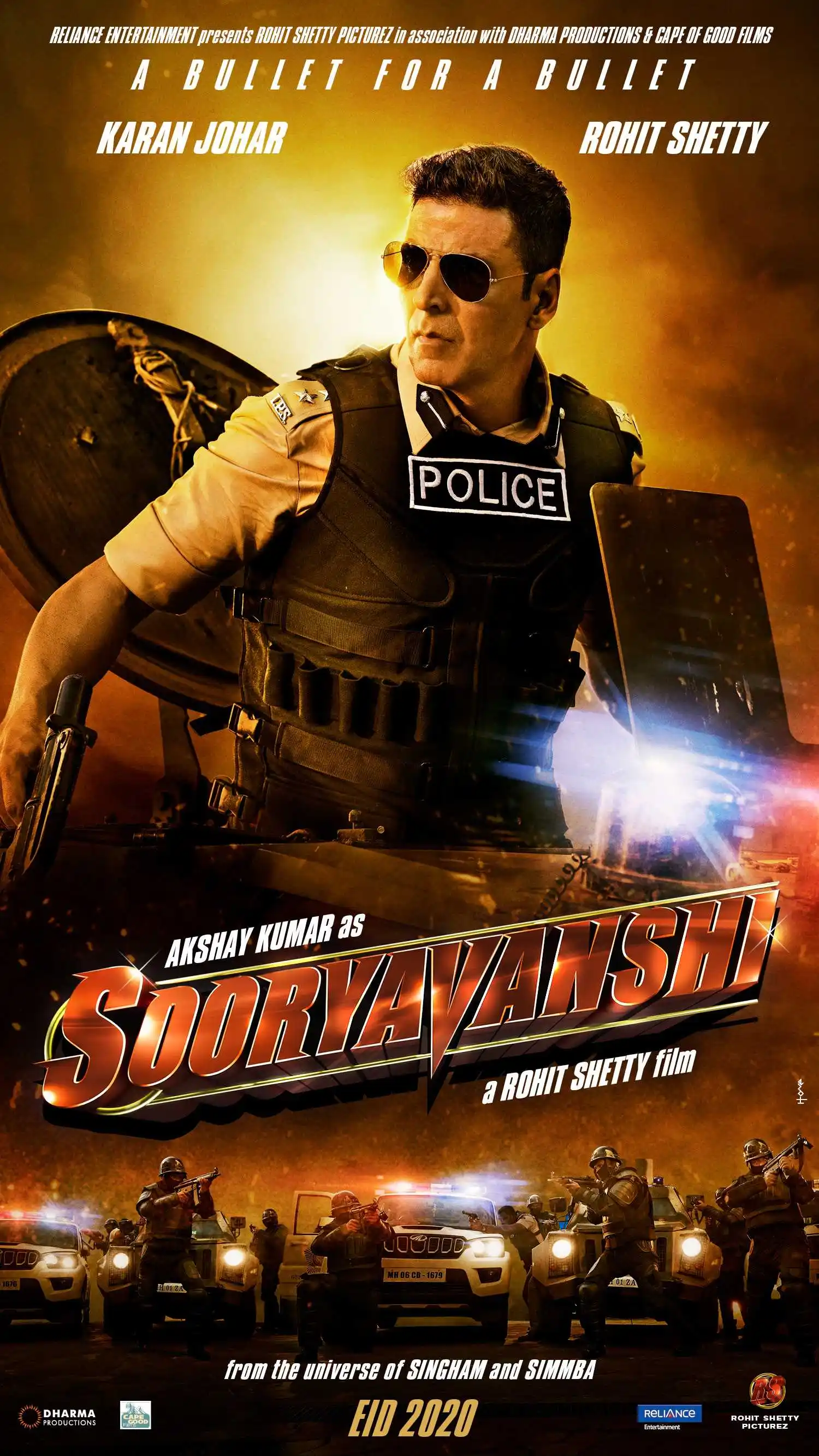 The action movie Sooryavanshi which is set in 2021 and is in the Hindi language was written and directed by Rohit Shetty. It was also co-produced by Reliance Entertainment and Hiroo Yash Johar Karan Johar Apoorva Mehta and Dharma Productions as well as by Aruna Bhatia and Cape of Good Films. It is the fourth episode of Shetty's Cop Universe and stars Katrina Kaif and Akshay Kumar as ATS chief DCP Veer Sooryavanshi.