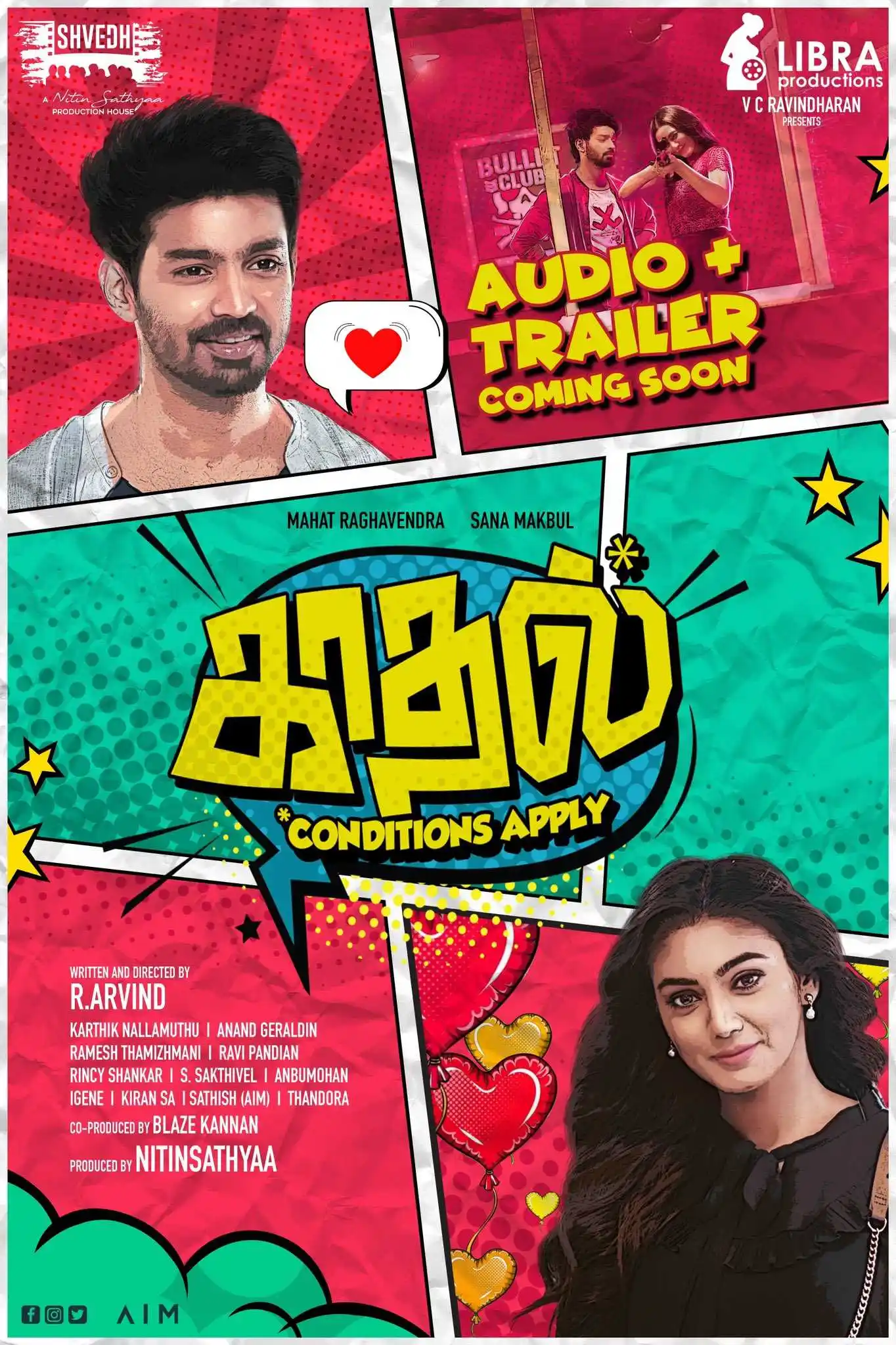 The upcoming film of Mahat Raghavendra and Sana is a romantic drama titled 'Kaadhal Conditions Apply ' directed by R Arvind. While the trailer for the film is being prepared the latest news is that post-production work on the film is also in full swing and is expected to be completed soon.