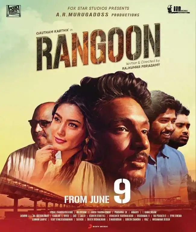 Rangoon is a 2017 Tamil-language action crime film directed and written by Rajkumar Periasamy and produced by AR Murugadoss. Gautham Karthik and Sana Makbul star in the film. It was the fifth collaboration between AR Murugadoss Productions and Fox Star Studios. Gautham Karthik's first successful film was this one.