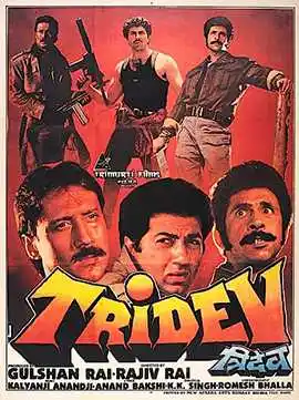 Rajiv Rai directed the 1989 Indian action thriller Tridev. Sunny Deol Naseeruddin Shah Jackie Shroff Madhuri Dixit Sangeeta Bijlani Sonam Anupam Kher and Amrish Puri are among the actors who appear in it.