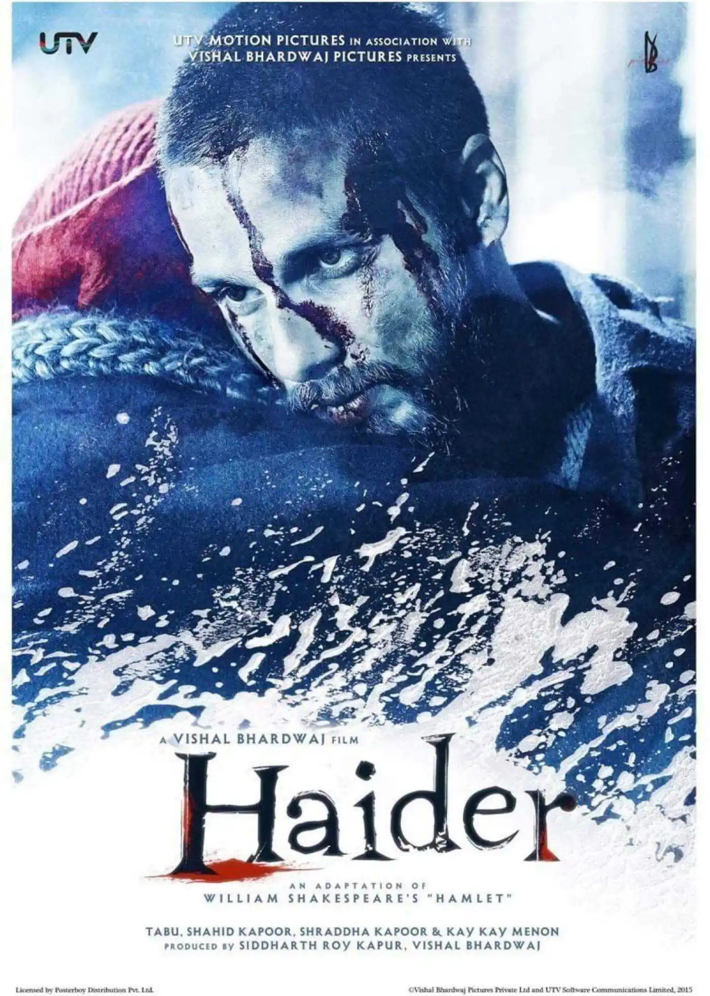 "Haider", a 2014 Indian crime thriller directed by Vishal Bhardwaj, is an adaption of Shakespeare's "Hamlet" and Basharat Peer's memoir "Curfewed Night". It tells the story of Haider, a student seeking the truth about his father's disappearance amidst the 1995 Kashmir conflicts. Screening at the 19th Busan International Film Festival, its release spurred controversy yet was met with critical acclaim, widespread commercial success and an array of awards.