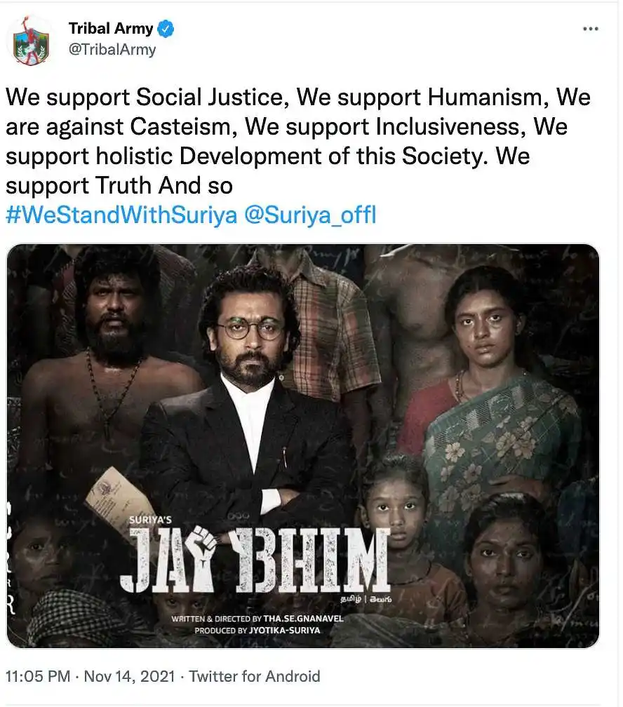 Suriya and the Jai Bhim creators have been receiving a ton of support in the meantime.