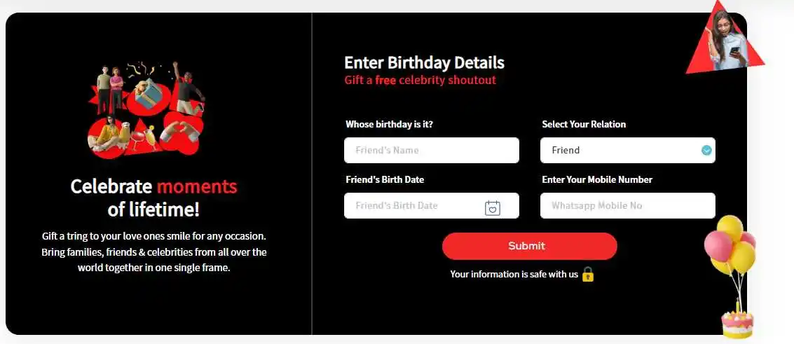 Your Personalised Celebrity Shoutout Video/Message will be delivered on your mail/Whatsapp which takes care of the happiness of your loved one as well as your pocket!