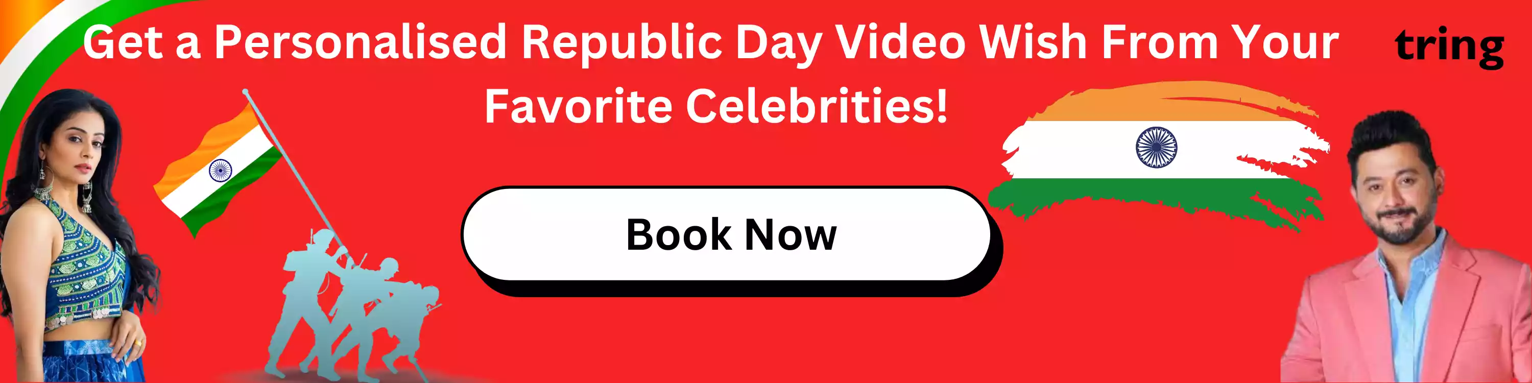 તહેવારો દરમિયાન પરિવારો ખુશી, હાસ્ય અને ઉજવણીથી ભરેલી પ્રિય યાદો બનાવવા માટે એક સાથે જોડાય છે. તમારી ઉજવણીને ખાસ સ્પર્શ આપવા માટે તમારા મનપસંદ સેલિબ્રિટી દ્વારા તમને વ્યક્તિગત વીડિયો સંદેશ મોકલવા વિશે વિચારો. ટ્રિંગમાં 12,000 થી વધુ હસ્તીઓમાંથી પસંદ કરવા માટે, તમારો તહેવાર વધુ ઉત્તેજક હશે!